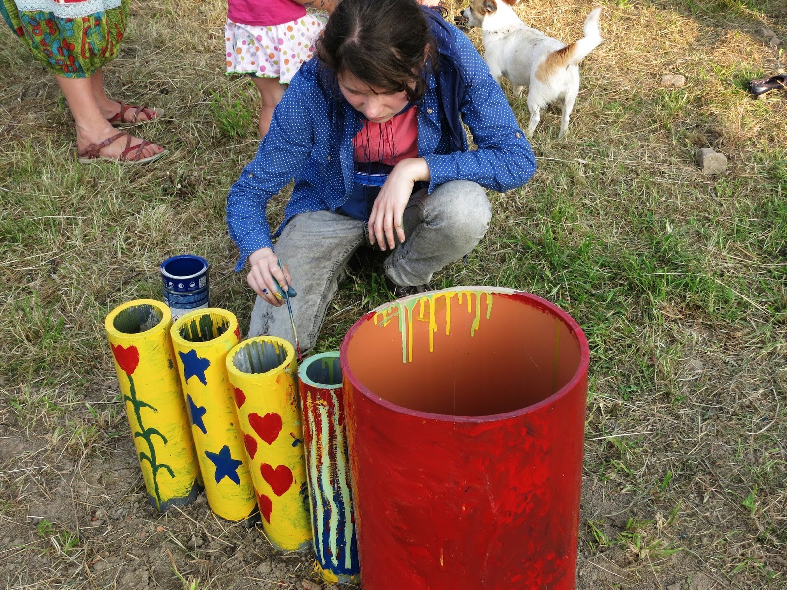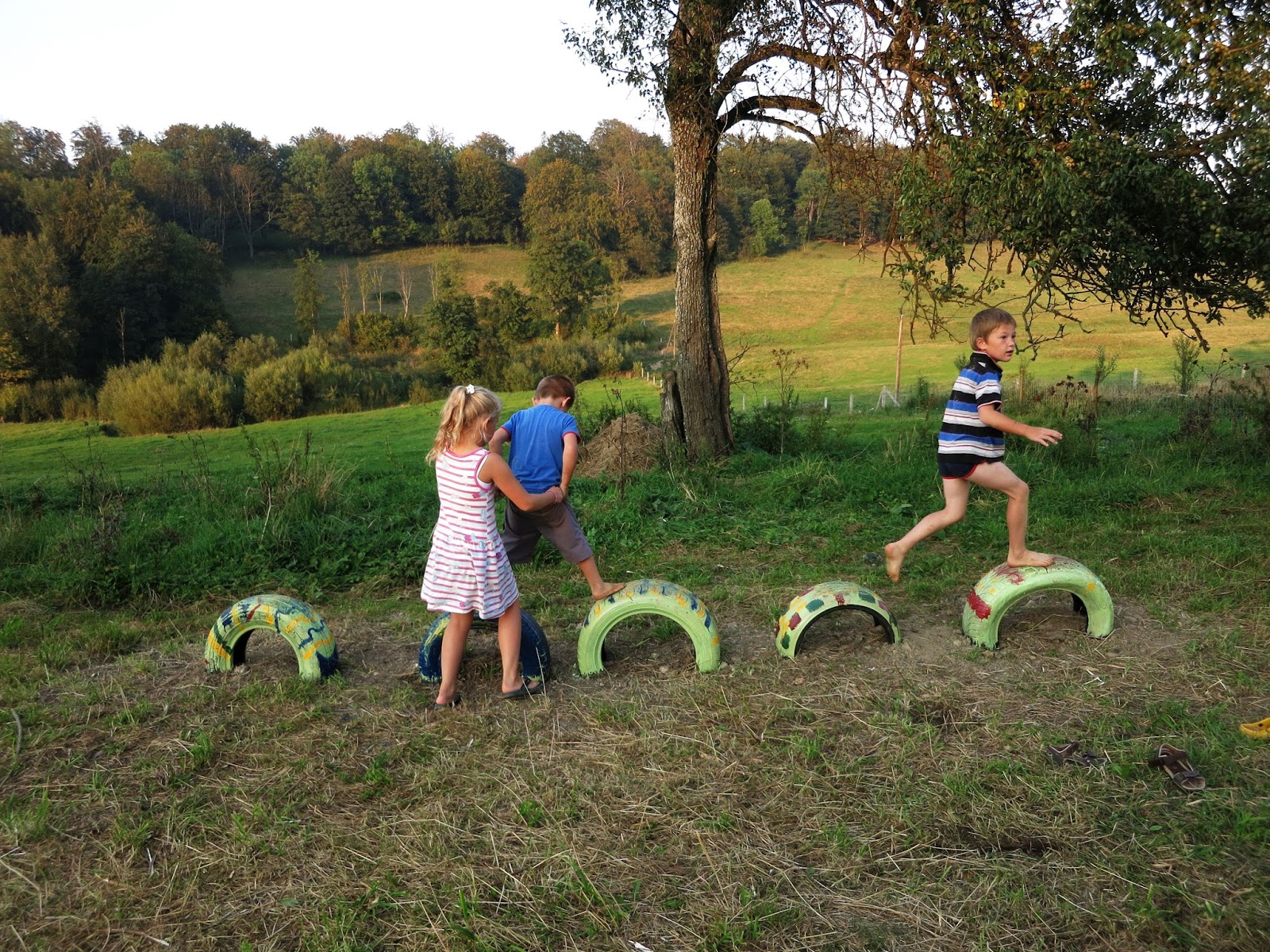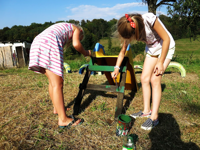 Kiedy byliśmy w Kurdystanie napisała do mnie Bietka ze Stowarzyszenia Rozwoju Sołectwa Krzywa, że fajnie byłoby coś razem zdziałać. Serce zabiło mi mocniejbo Beskidy (i nasze łemkowskie inklinacje), bo to stowarzyszenie stworzyło kiedyś fantastyczny projekt fotograficzny z małymi mieszkańcami wsi (a my nieświadomie robiliśmy podobne rzeczy z naszymi dziatkami). Zaczęłam śledzić ich profil i zauroczyłam się totalnie. We wrześniu wreszcie udało się przyjechać. Robiliśmy warsztaty dla mam i dzieciaków i wystawiliśmy teatrzyk (po raz pierwszy na ścianie stodoły). A poza tym zbudowaliśmy plac zabaw.