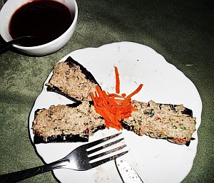 Po jakimś czasie zaprzyjaźniliśmy się z fantastyczną psycholożką z naszego ośrodka Rozą, która wzięła na siebie ciężar pokazania nam uroków narodowej kuchni i zaczęliśmy eskapadę po tanich a smacznych tawernach (spis podaję na końcu). Kulinarnych odkryć co nie miara ale jeśli chodzi o ukochane warzywa to mieliśmy je głównie w przystawkach. Gruzini nie są jakimiś specjalnymi fanami sałatek (pominąwszy najprostsze, typu -ogórki i pomidory). Wyjątkiem jest Pchali (znana również pod nazwą mchali, phali lub pxali) witaminowa bomba, którą można zrobić z rozmaitych składników.
