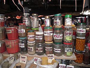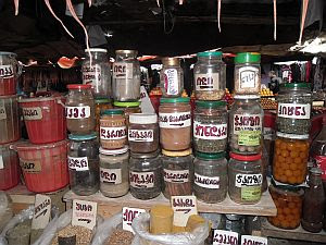 Ponieważ jestem w ciąży (tak jakbyście zapomnieli) nie mogłam sobie pozwolić na taką ziemniaczano-chlebowo-makaronową dietę. Kilka dni wytrzymałam ale co wieczór kładąc się do łóżka przepraszałam dzidzię i przeganiałam wizję jak to za jakiś czas przytoczę się do Polski. Po nocach zaczęły mi się śnić witaminy- miały rozmaite formy i kształty, wszystkie jednak krzyczały jedno: zjedz nas! W związku z tym wybrałam się na bazar. Szczerze mówiąc (kiedy spojrzałam w kalendarz przestałam się dziwić) targ nie objawił się jako jakieś warzywne eldorado, a ceny trochę zwalały z nóg. Moim najsmaczniejszym bazarowym odkryciem okazało się tkhlapi– czyli cienkie jak kartka papieru, bardzo kwaśne spreparowany tkemali (to to co trzymam w prawej dłoni):
