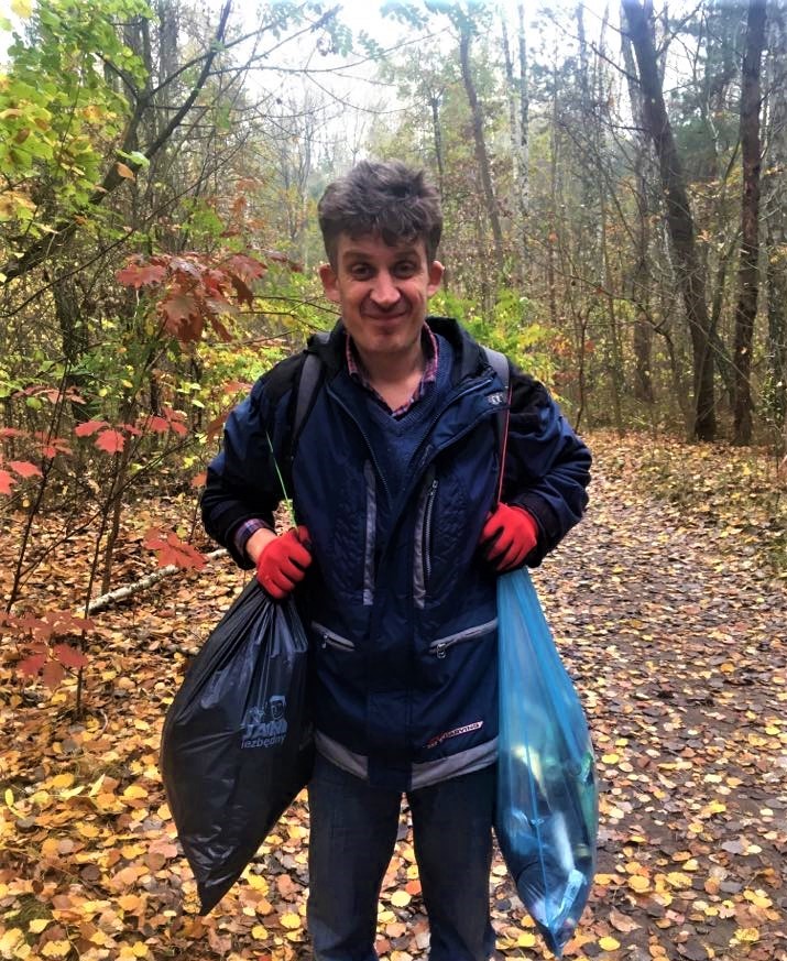 Jędrkowi, z którym pracuję tak się spodobało zbieranie śmieci w lesie,